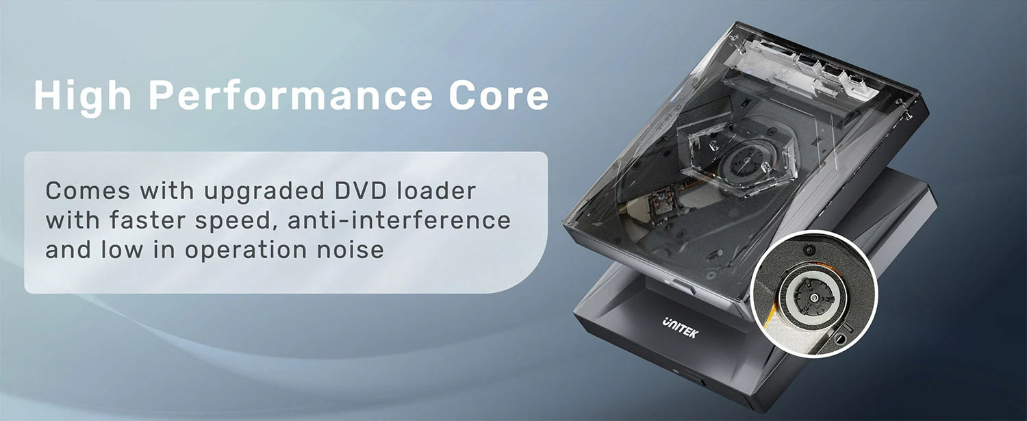 Daha hızlı, parazit önleyici ve düşük çalışma gürültüsüne sahip yükseltilmiş DVD yükleyici ile birlikte gelir.