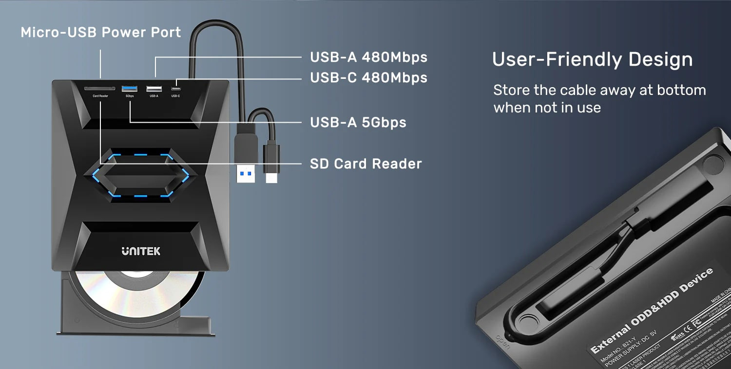 UNITEK HARİCİ DVD-RW USB TYPE-C/A 5in1 DOCK (T1037A)