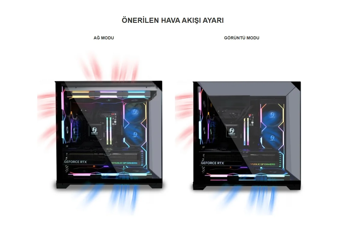 Mesh Modu : 11x120 mm'ye kadar fanları veya 2x140 mm ve 8x120 mm'ye kadar fanları destekler.Görüntü Modu : 8x120mm'ye kadar fanları destekler