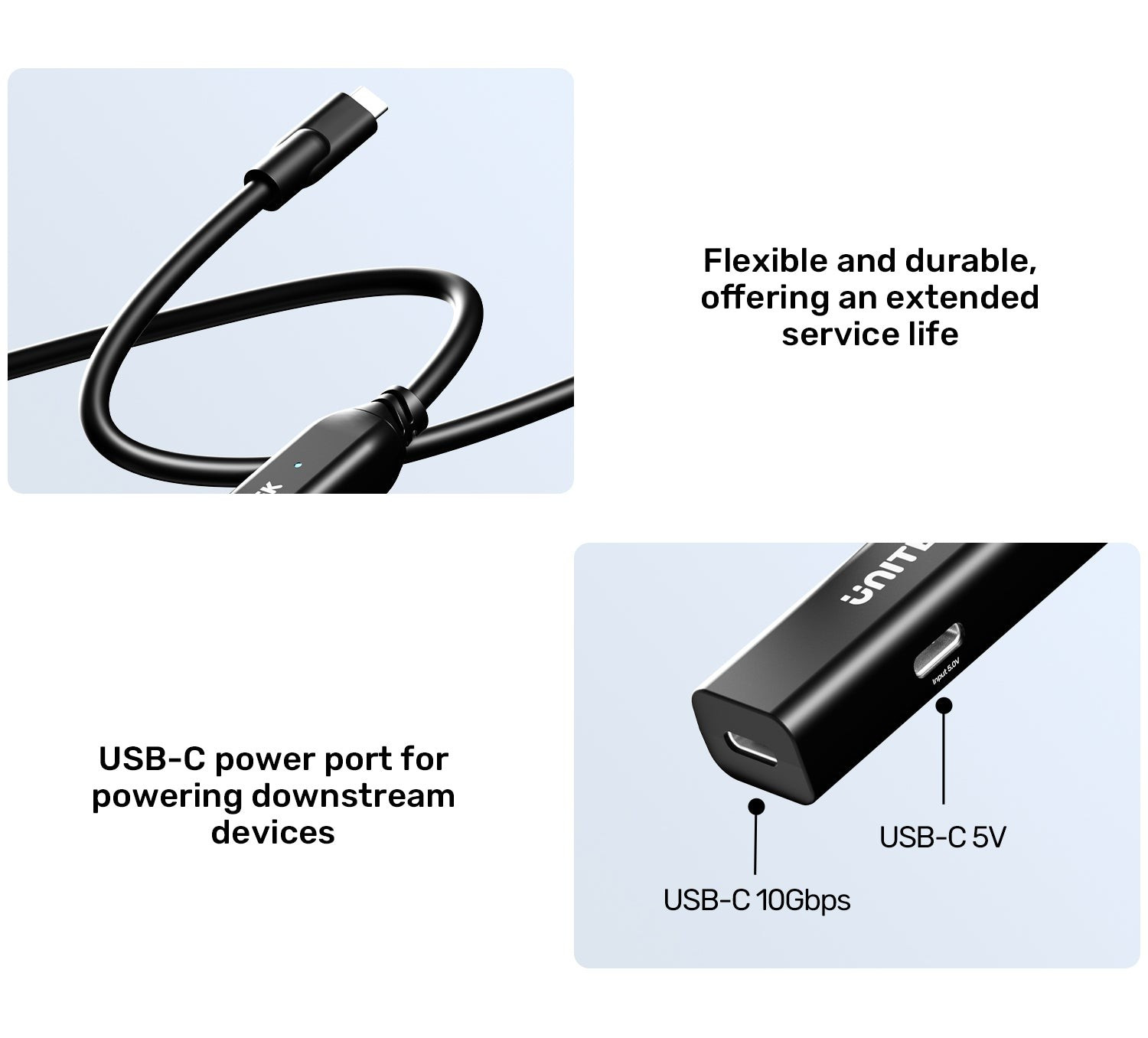 Unitek USB-C uzatma kablosu, 5 metreye kadar erişim sağlar ve 10Gbps (USB 3.2 Gen 2) veri aktarımını destekler — 10GB’lık bir dosyayı 10–20 saniyede taşıyabilirsiniz. Dahili sinyal güçlendiriciler, alt cihazlar için DC 5.0V USB-C güç girişi ve ters güç akışı koruması ile MacBook, iPad, Steam Deck ve daha birçok cihaz için kararlı, uzun mesafeli bağlantı sunar.