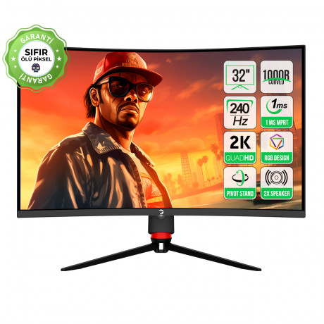 GamePower 32'' Vision V30 Curved 1000R RGB 240Hz 1ms 2K (QHD) , Kvm, Speaker, Type C Gaming Monitör (Sıfır Ölü Piksel Garantili)