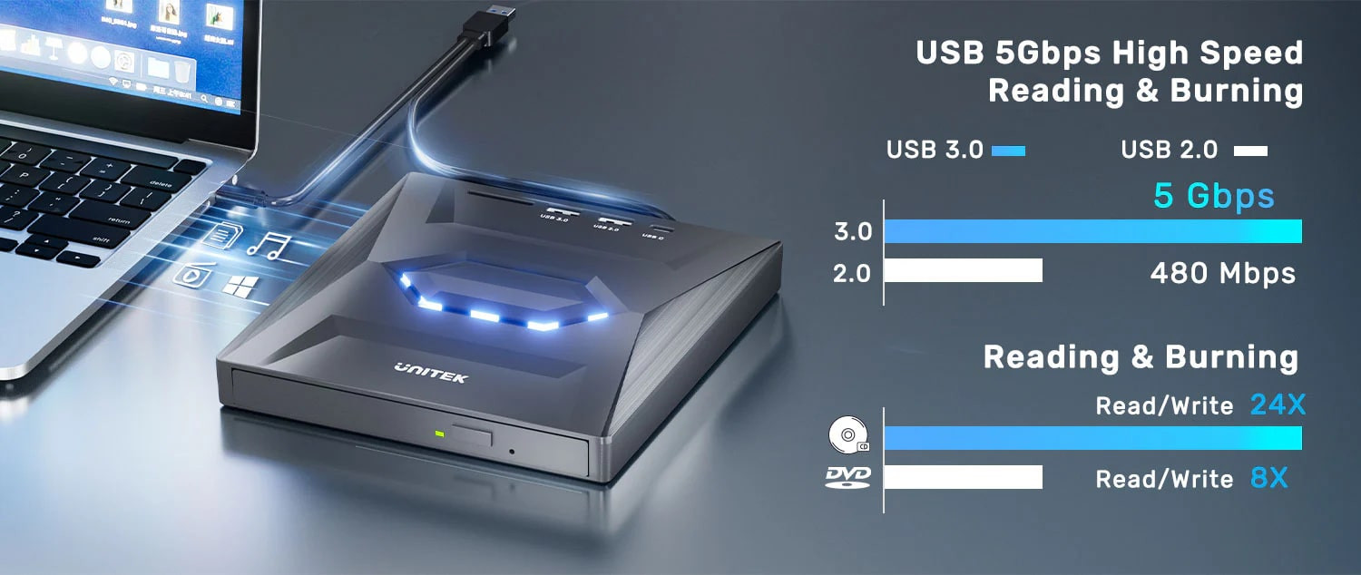 5Gbps 8x'e kadar DVDR Yazma/Okuma Hızı.